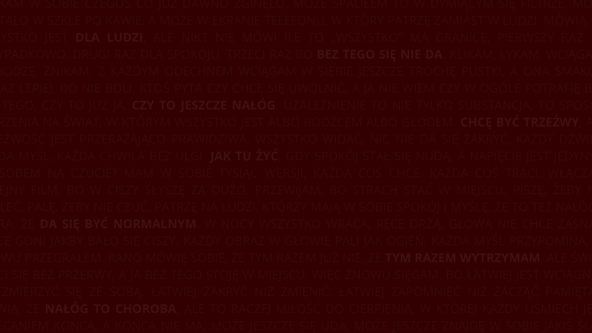 Nie ma znaczenia, od czego uciekasz – od alkoholu, telefonu, miłości czy myśli, których nie potrafisz zatrzymać. Wszystkie uzależnienia mają ten sam rdzeń – ten sam mechanizm ucieczki od bólu.